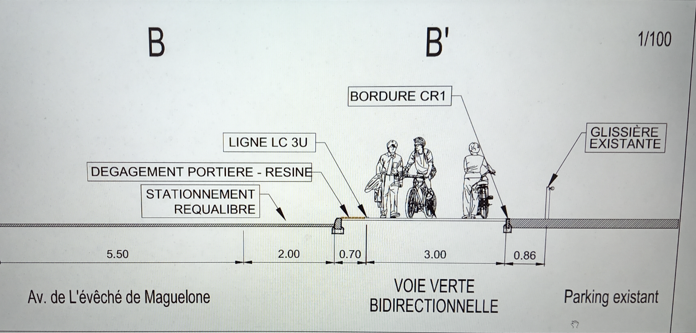 Une bande de sécurité entre la route et la voie verte viendra protéger les usagers tout au long du parcours, tandis que les places de stationnement de l’avenue de l’Évêché de Maguelone sont préservées, afin de concilier confort, sécurité et respect du cadre naturel de la zone Natura 2000.
