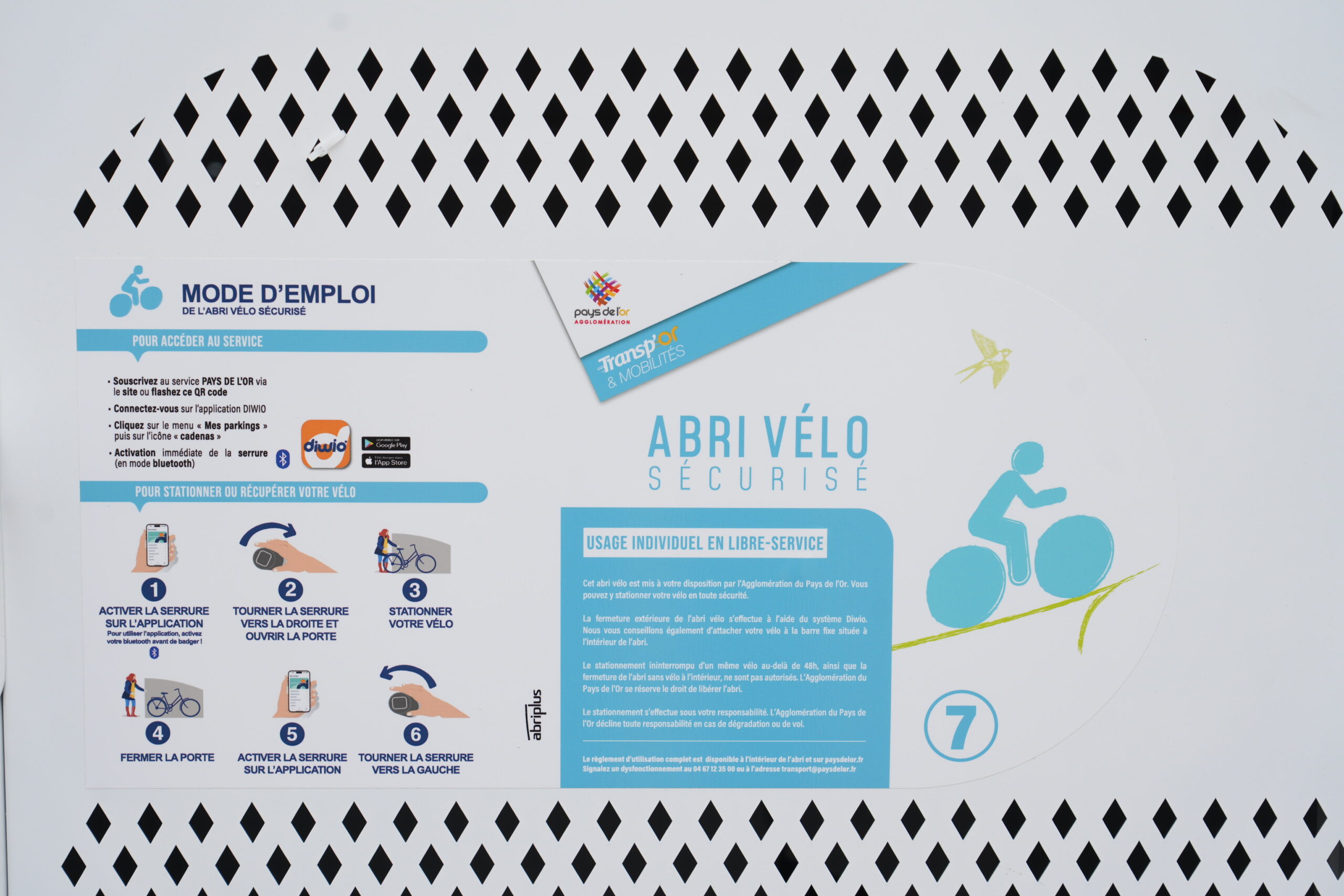 Les abris situés à la Salle Bleue sont connectés via l’application mobile Diwio, permettant une ouverture simple et rapide par Bluetooth.