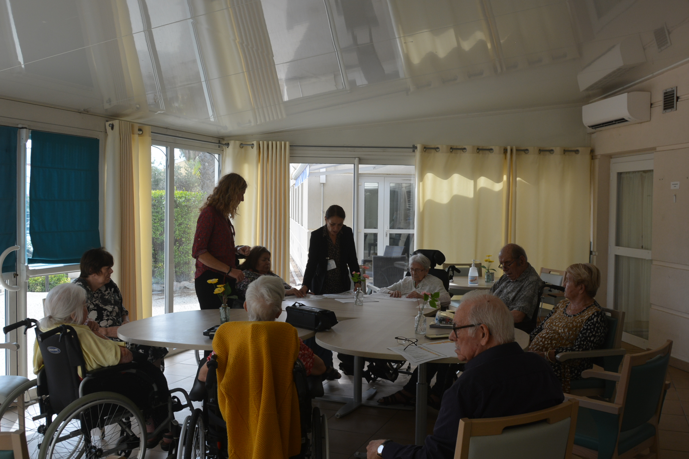 Chaque jeudi, Élise de l’équipe de la médiathèque se rend à la maison de retraite Les Reflets d’Argent pour que les résidents puissent continuer à profiter des bienfaits de la lecture. La médiathèque met à disposition magazines, romans sur demande ou une thématique en lien avec les activités réalisées par Nadège art-thérapeute et des liseuses audio conçues pour faciliter l’utilisation des personnes déficientes visuelles.