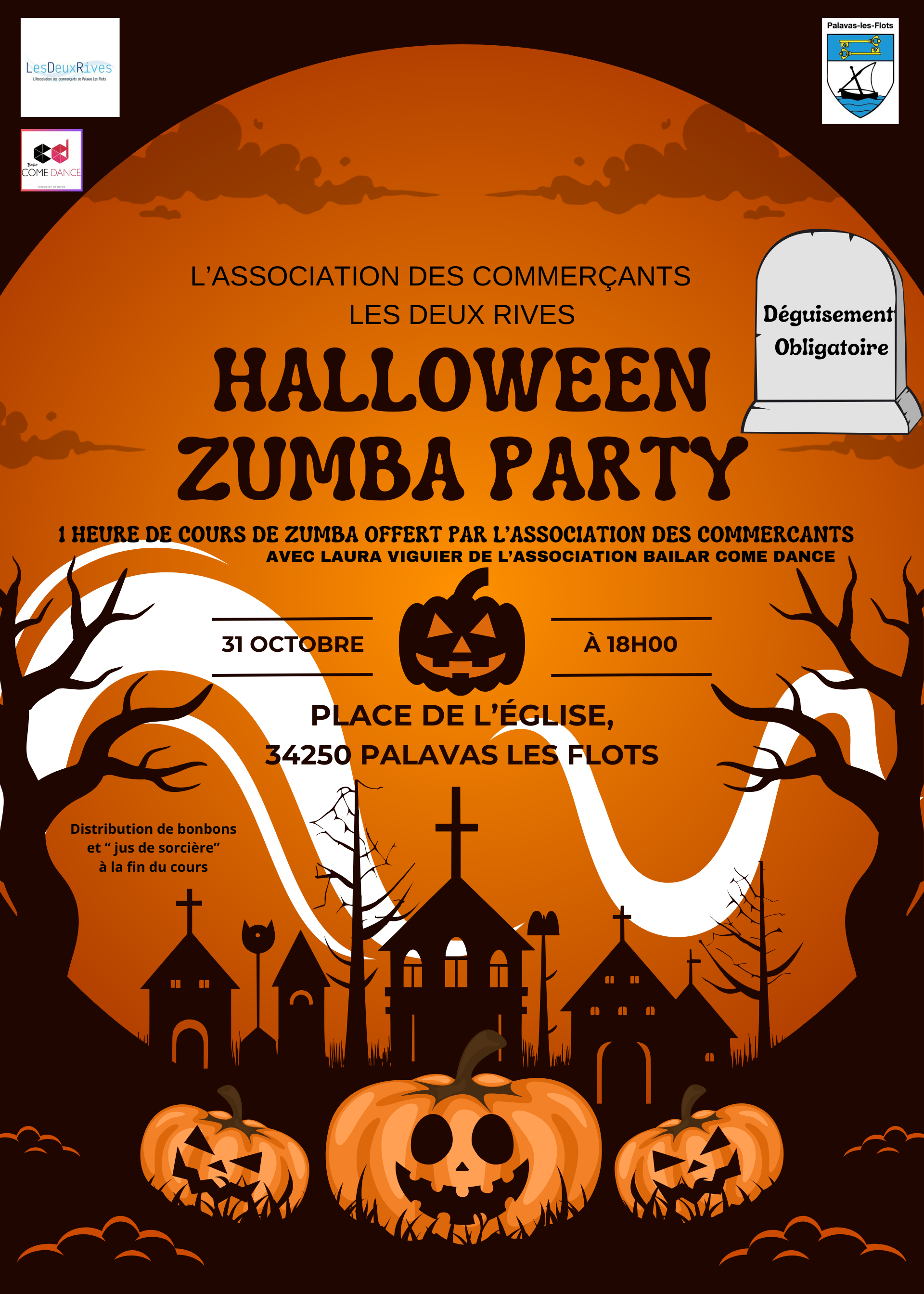L’association des commerçants vous offre une heure de Zumba gratuite, dans une ambiance festive et déguisée. Que vous soyez débutant ou habitué, en solo ou entre amis, cette séance rythmée est l’occasion parfaite de célébrer Halloween tout en faisant le plein d’énergie. Sortez vos costumes les plus effrayants, enfilez vos baskets, et rejoignez-nous pour une soirée pleine de fun, de musique et de bonne humeur. Un moment convivial à ne pas manquer pour petits et grands !