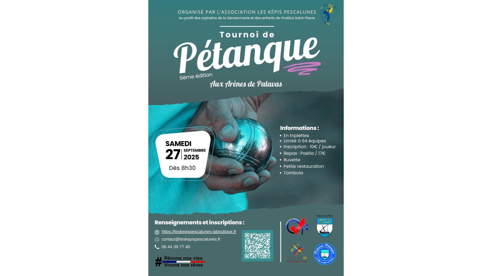 Les Képis Pescalunes vous donnent rendez-vous le samedi 27 septembre 2025 dès 8h30 aux Arènes El Cordobès de Palavas-les-Flots pour leur traditionnel Tournoi de pétanque en triplette.